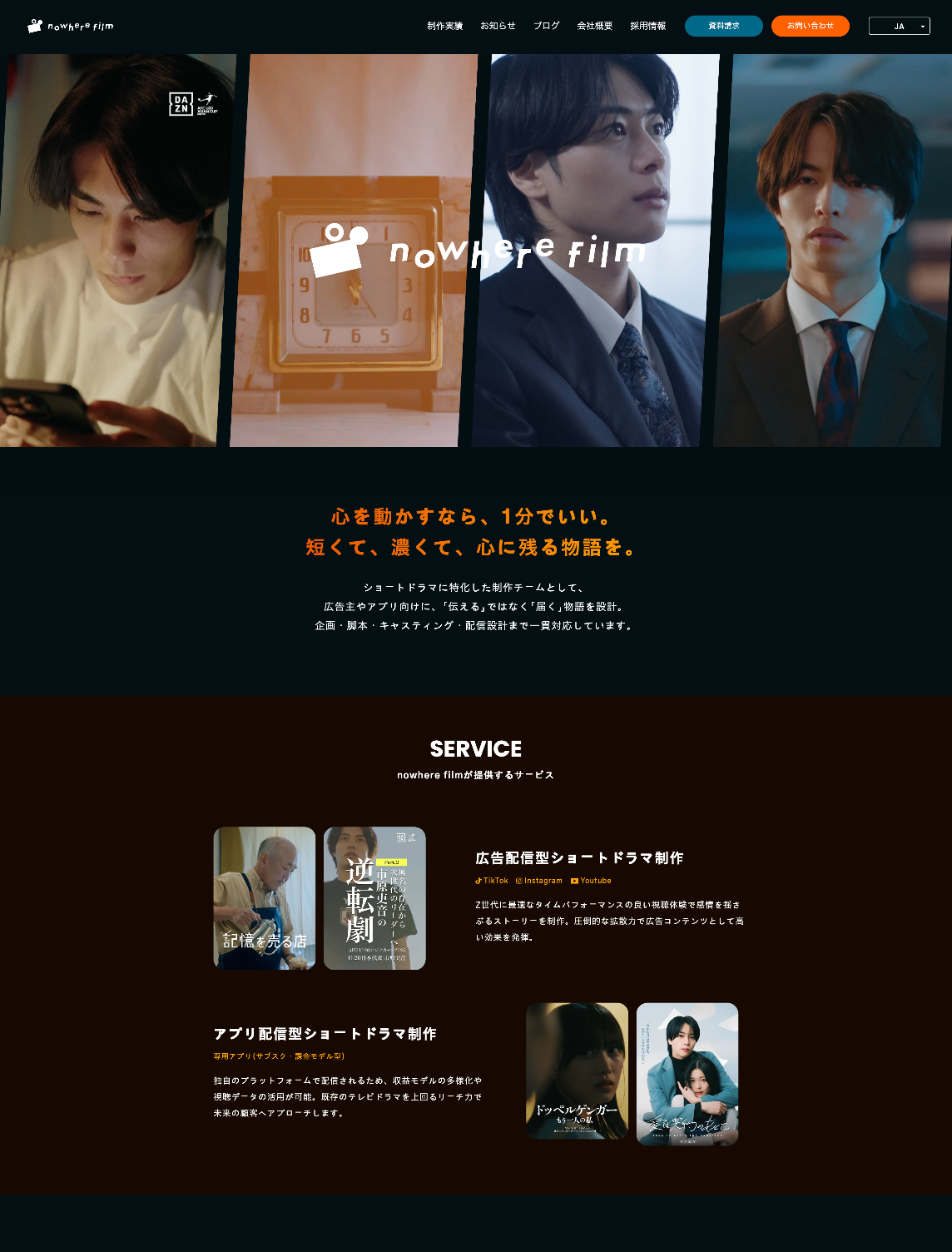 ショートドラマ制作を軸とするnowhere film株式会社は、設立1年という新興企業ながら、Webサイト経由の問い合わせがほぼゼロという状況からオウンドメディアを立ち上げました。新しい市場であるショートドラマ分野に特化したコンテンツを展開しています。