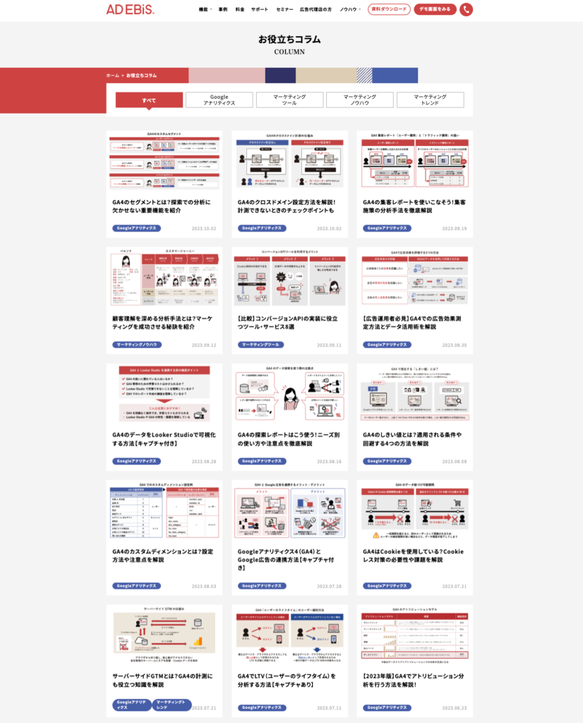 | オウンドメディアの概要 | マーケティングツール「アドエビス」のリード獲得を目的としたオウンドメディア |